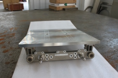 产品技术标准及数值: 液体额定流速:25 L/min 液体入口最高温度:58 °C 水冷基板最大热阻:7.4 °C/kW 工作压力:4 bar/max 测试压力:8 bar 工作温度范围:空气 -40~+75 °C :液体 -40~+85 °C 最大储存温度(空气): -40~+85 °C 尺寸:140*160 mm 产品说明: 该水冷板焊接方式全部采用真空钎焊工艺,钎焊面焊着率高,热性能及可靠性全部满足客户的使用要求。