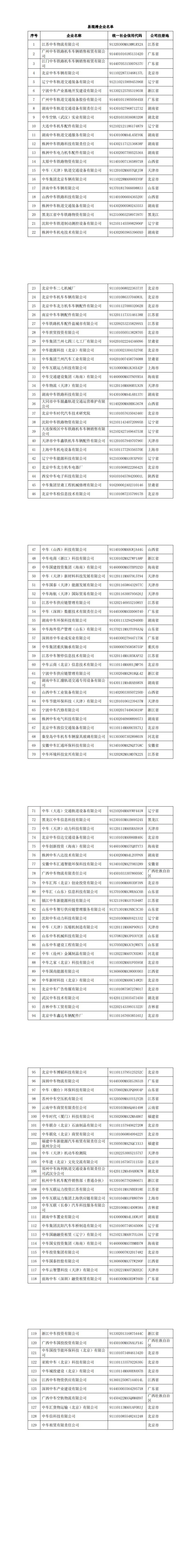 此次公告涉及129家第三方企业,后期中国中车将陆续更新澄清名单。此次公告中涉及的公司及“国家企业信用信息公示系统”中显示与中国中车无隶属或股权关系的第三方企业,其相关市场经营行为与中国中车及所属各级子公司无任何关联。